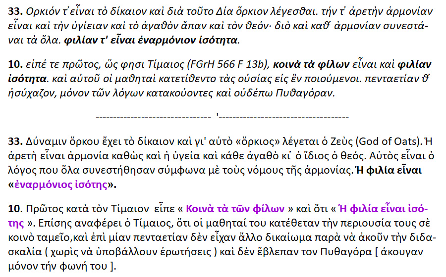 ΔΙΟΓ. ΛΑΕΡΤΙΟΥ – » Βίοι φιλοσόφων ».ΠΥΘΑΓΟΡΑΣ [ 33,10 ].