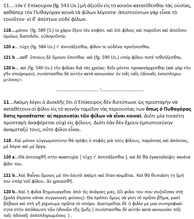 Κοινά είναι τα υλικά αγαθά των αληθινών φίλων. { απόδ. και σχολ. : ΔΗΜ. ΤΖΩΡΤΖΟΠΟΥΛΟΣ , { σελ.703 }.