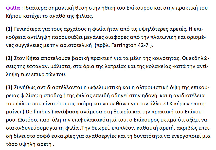 ΑΛ. ΝΕΧΑΜΑ – » Περί φιλίας »,{ σελ. 37 , 49 }.