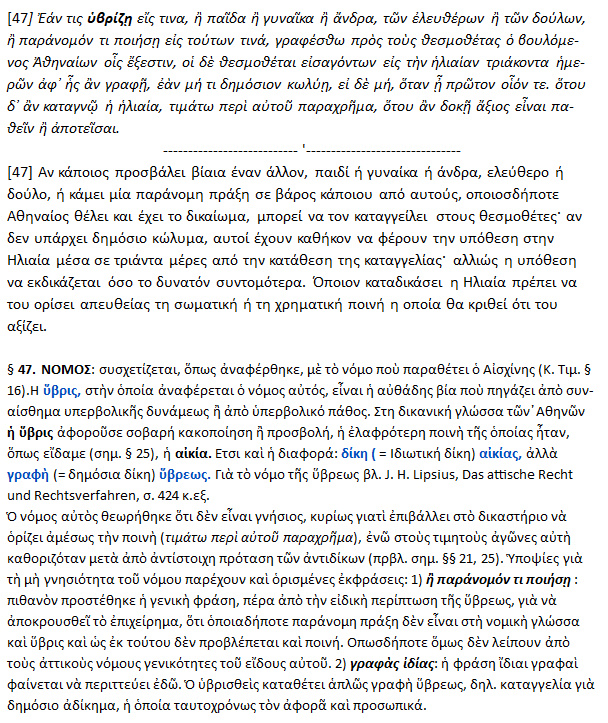 ΔΗΜΟΣΘΕΝΟΥΣ – » Κατά Μειδίου » , { 47 ].