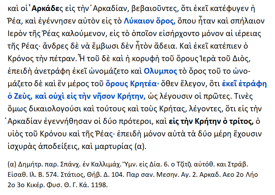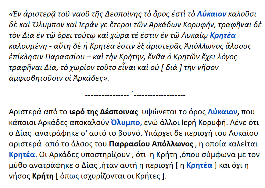 Ο Δίας ανατράφηκε στην ΚΡΗΤΕΑ [ Αρκαδίας ] και όχι στην ΚΡΗΤΗ.!