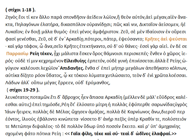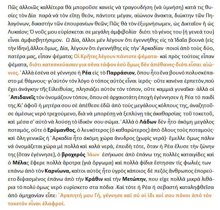 ΚΑΛΛΙΜΑΧΟΥ -» Ύμνος εις Δία » ,{ στ. 19-46 }.
