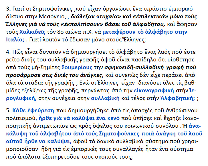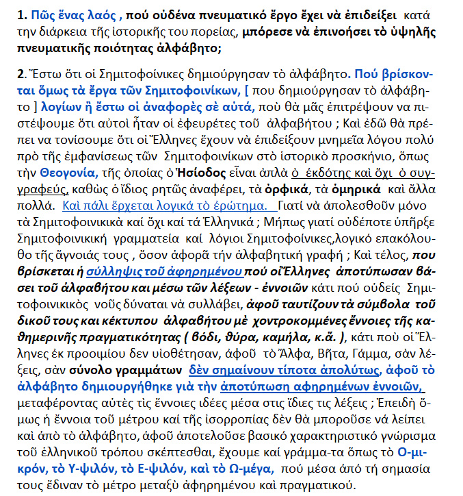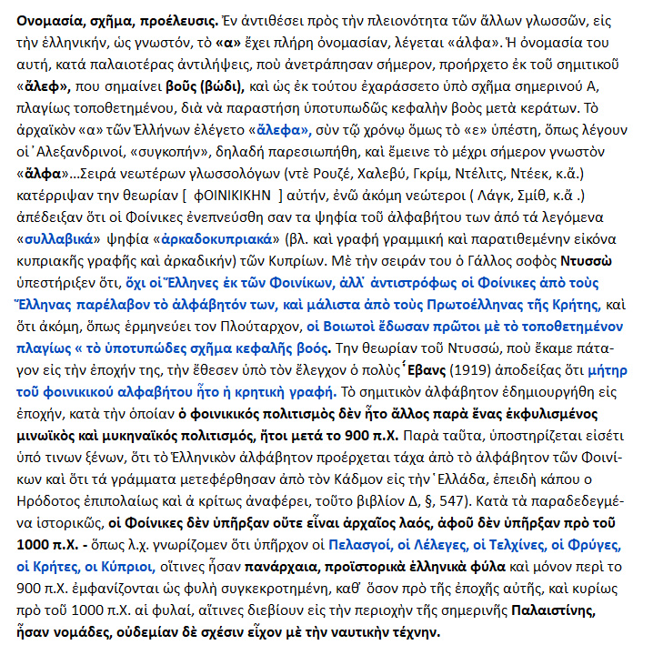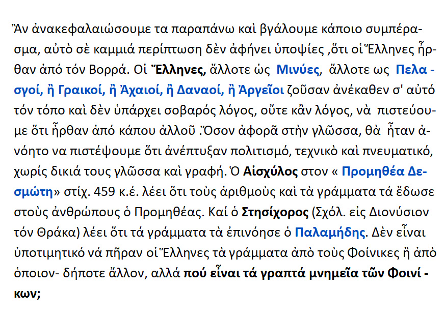 Δεν είναι υποτιμητικό να πήραν οι Έλληνες τα γράμματα απὸ τους Φοίνικες ή απὸ οποιονδήποτε άλλον, αλλά πού είναι τα γραπτά μνημεία των Φοινίκων;