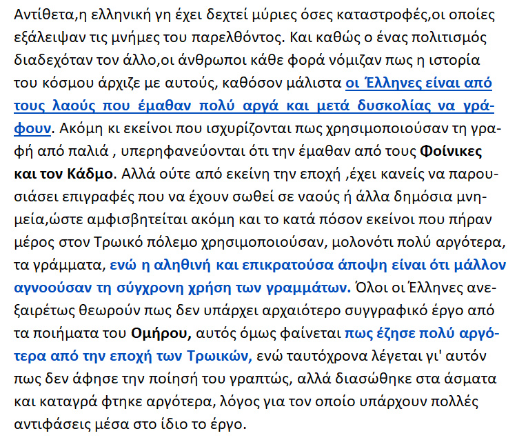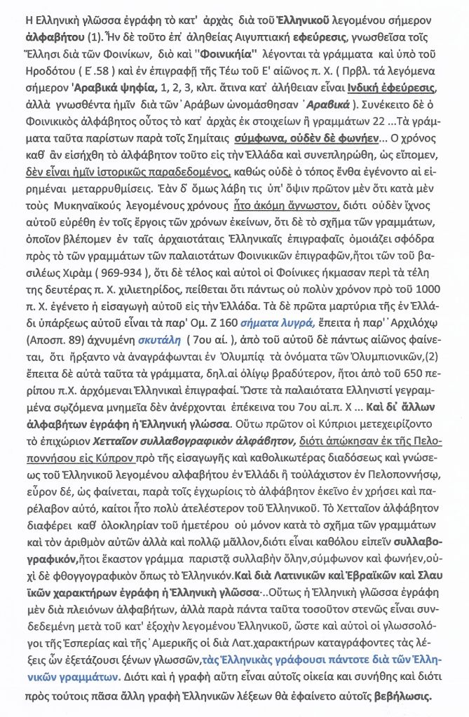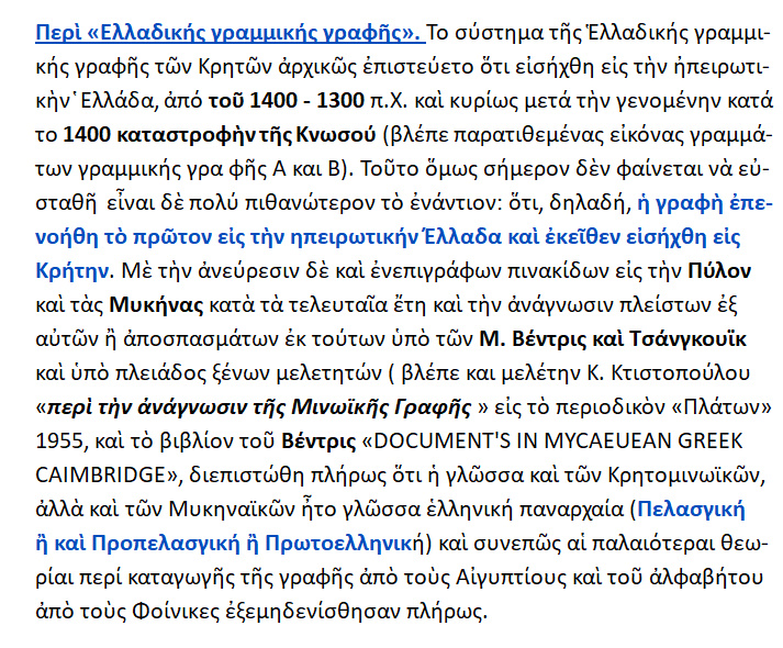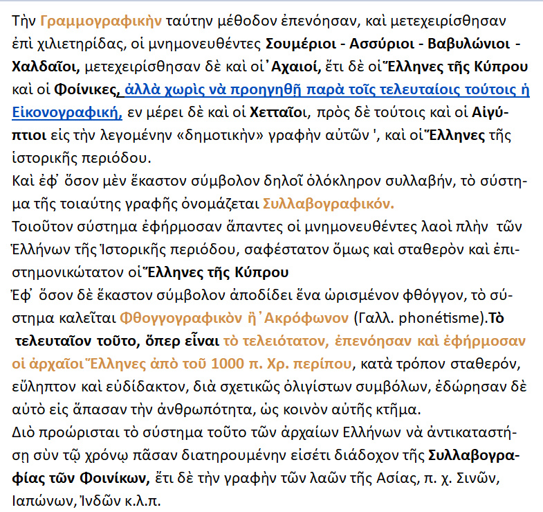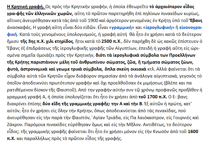 ΙΣΤΟΡΙΑ ΤΟΥ ΕΛΛΗΝΙΚΟΥ ΕΘΝΟΥΣ – » H Ελληνική γραφή », { σελ.198 -99 }.