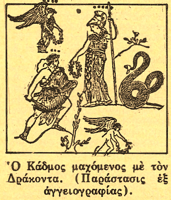 Κάδμος (Μυθολογία). Εθνικός ήρως των αρχαίων Θηβαίων και επώνυμός τους μάλιστα. Οι μετέπειτα μυθογράφοι στους οποίους βασίσθηκαν ακρίτως αργότερα, αλλά και στην σύγχρονη εποχή, διάφοροι ξένοι και Έλληνες δυστυχώς συγγραφείς, μας πληροφορούν ότι ο Κάδμος ήταν υιός του ̓Αγήνορος, βασιλέως της Φοινίκης, ενώ Φοίνικες και Φοινίκη δεν υπήρχαν κατά την πανάρχαια αυτή εποχή.