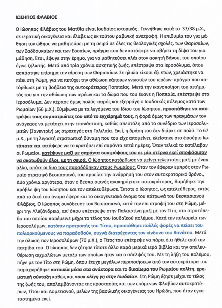 Ποίος ήταν αυτός ο Ιουδαίος Ιώσηπος ,που συκοφαντεί και απαξιώνει τους Έλληνες ; Ένας τρέσας , που δεν αυτοκτόνησε όπως είχε συμφωνήσει με τους άλλους συντρόφους συμπολεμιστές του ,αλλά προτίμησε να γίνει υπηρέτης των Ρωμαίων.
