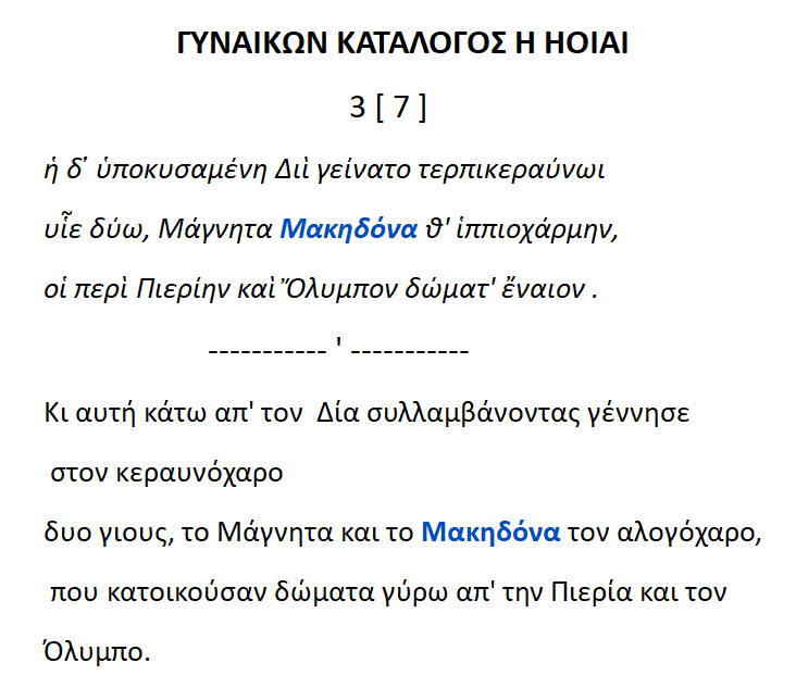ΗΣΙΟΔΟΥ – » Γυναικών κατάλογος ή Ηοίαι », 3 {7 }.