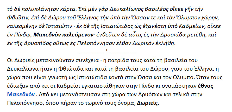 << Έπειτα οι Δωριείς εγκαταστάθηκαν στην Πίνδο κι ονομάστηκαν έθνος Μακεδνόν >>