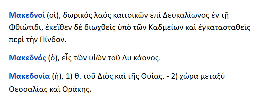 Μακεδνοί : Δωρικός λαός , που κατοικούσε την εποχή του Δευκαλίωνα στη Φθιώτιδα , από εκεί δε έφυγε διωγμένος από τους Καδμείους και εγκαταστάθηκε στην περιοχή γύρω από την Πίνδο. Μακεδνός : ένας από τους υιούς του Λυκάονος .