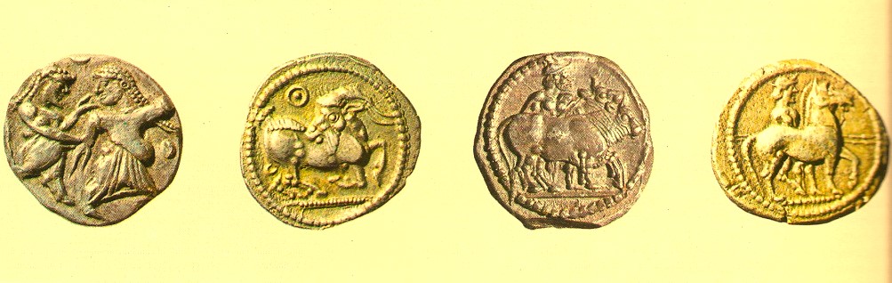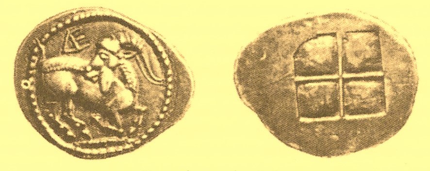 Μακεδονικά νομίσματα. [Αρ] : στατήρ Λητής (Αθήναι, Νομισμ. Συλλογή Εθν. ̓Αρχαιολ. Μουσείου),στατήρ Αιγών (Παρίσι, Εθν. Βιβλιοθήκη),οκτάδραχμο Ηδωνών (Λονδίνο, Βρετ. Μουσείο) ,οκτάδραχμο Βισαλτών (Παρίσι, Εθν. Βιβλιοθήκη).