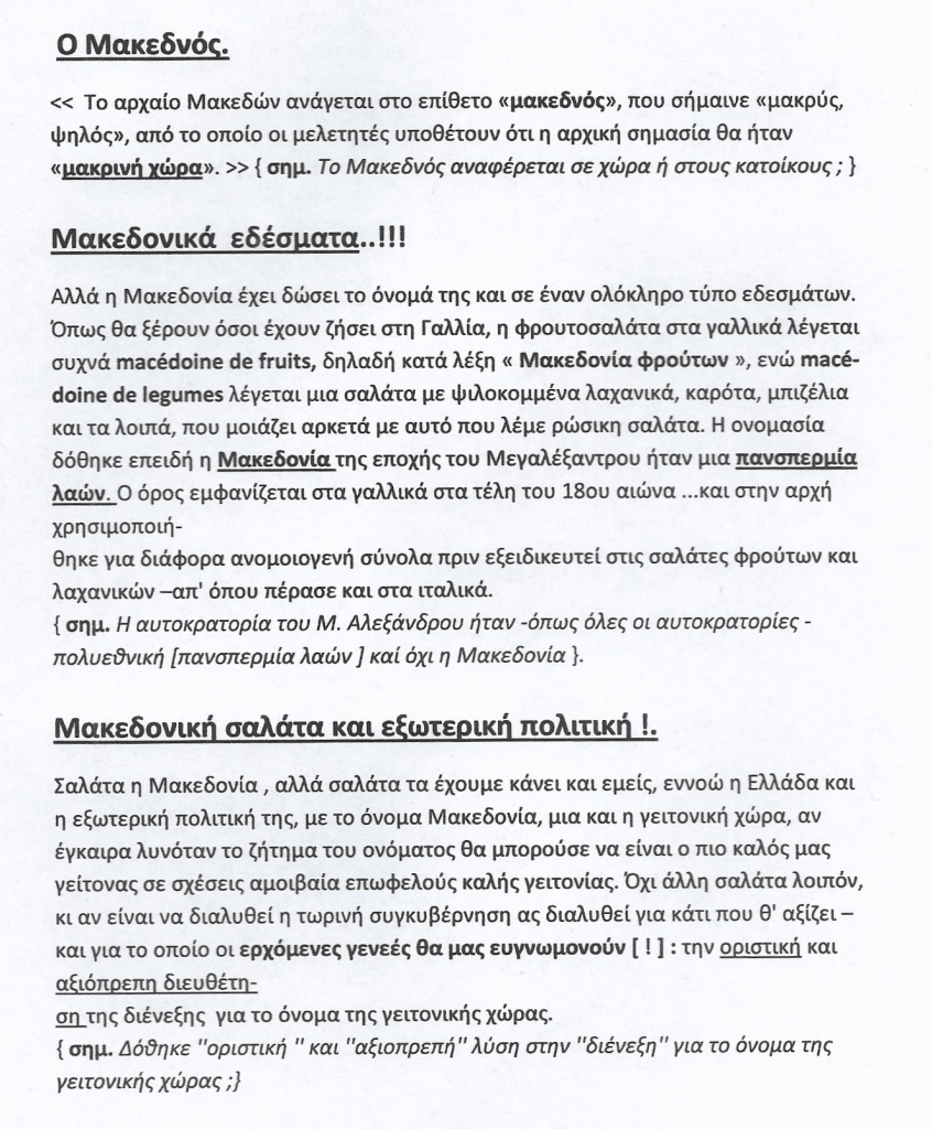 << Για το Σκοπιανό ,την ονομασία και τη »Μακεδονική >>.