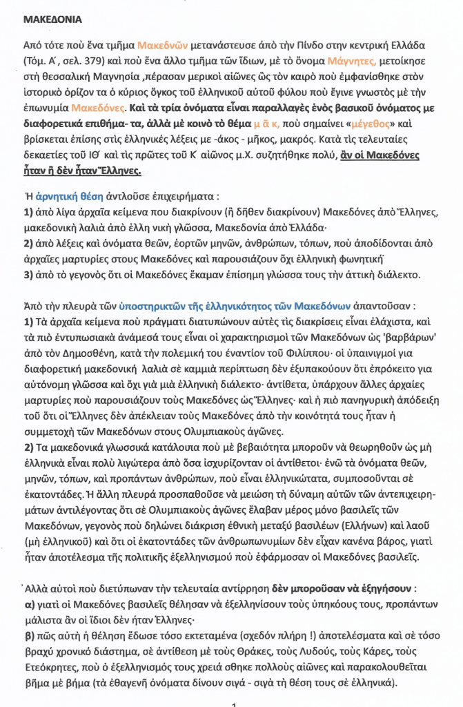 Γ. Ν. ΧΑΤΖΗΔΑΚΙ – » Περί του ελληνισμού των Αρχαίων Μακεδόνων », εισαγωγή.