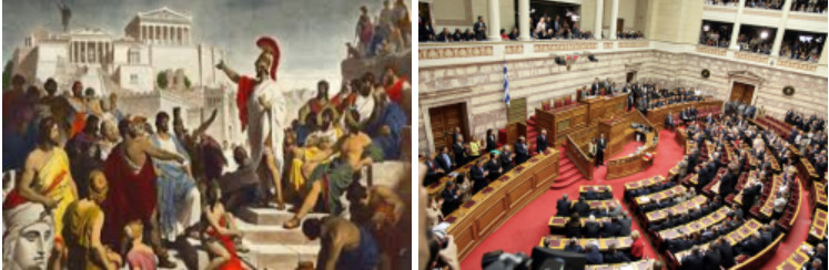 Δημοκρατία είναι  ΜΟΝΟΝ η  ΑΜΕΣΗ.  Δημοκρατία με αντιπροσώπους ΔΕΝ υφίσταται .Η  Δημοκρατία  έχει προσωπική συμμετοχή στην άσκηση  της εξουσίας» δια κλήρου».Γι’ αυτό και οι βουλευτές ονομάζονται ‘‘ κυαμευτοί ».***Δημοκρατία με »καπέλα»  { Προεδρική  ή μη  ,Βασιλευομένη  ή μη ,  αστική ! [ δηλαδή υπάρχει και η Κωμική ,εκ της  κώμης ; ] σοσιαλιστική, καπιταλιστική ,Λα’ι’κή {;] πλουραλιστική{;},συμμετοχική {;} κτλ ] είναι  εξαπάτηση  και  σοφιστεία .