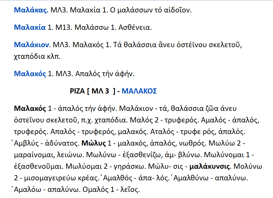 Η ρίζα *ΜΛ- [ Μαλακός] .