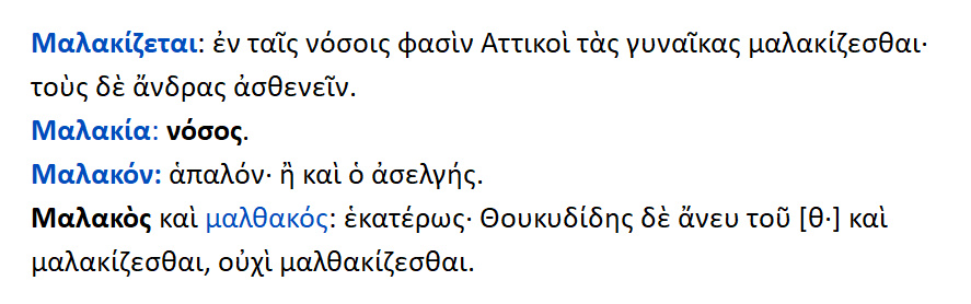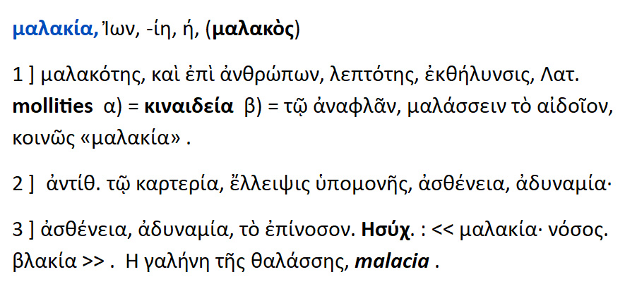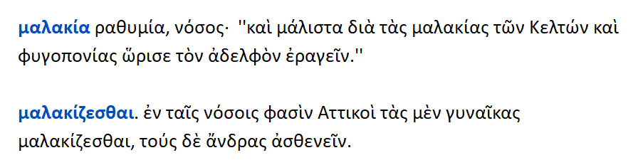 Μαλακία= νόσος .Μαλακός = μαλθακός.