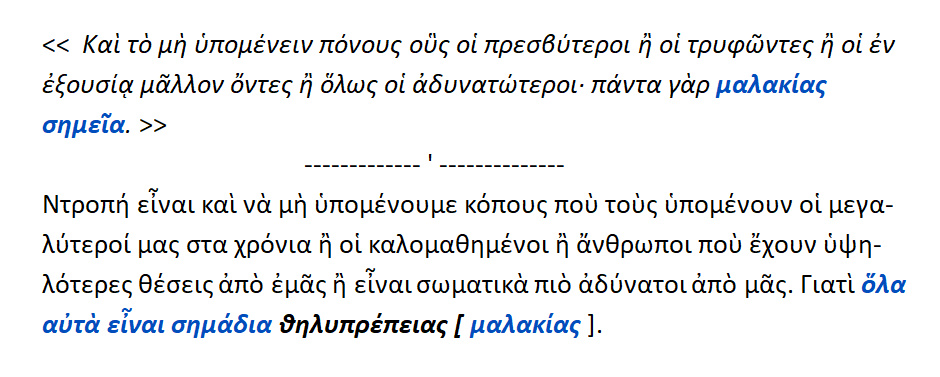 Σημεία μαλακίας { θηλυκότητας } το να μην υπομένουμε τους πόνους .
