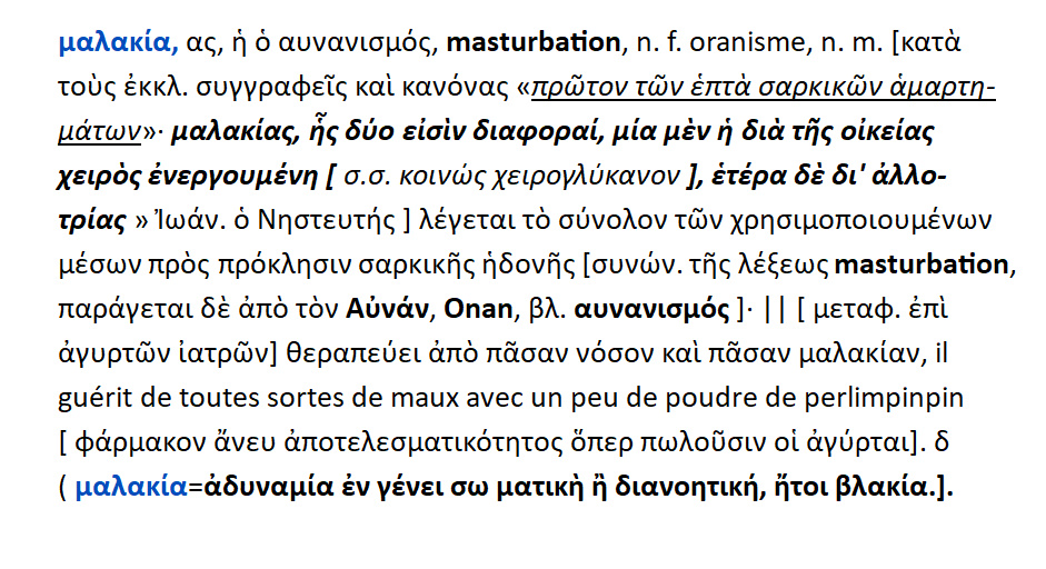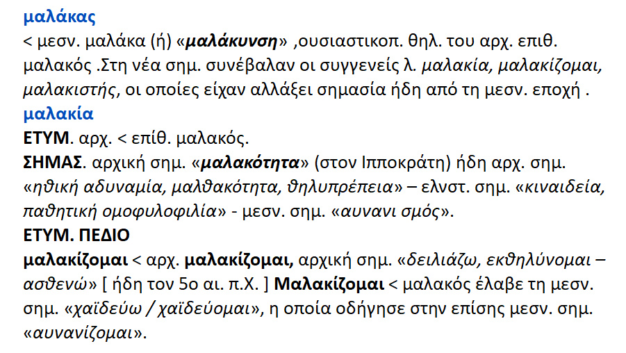 Παρακολουθήσαμε πώς από το ρήμα ΜΑΛΑΤΤΩ/ΜΑΛΑΣΣΩ προέρχεται η λέξις μαλακία .Αλλά πώς γεννήθηκε ο μαλάκας [ με την ιερή αρωγή της Χριστιανικής Ηθικής } με την άλλη σημασία του αυνανισμού. ;
