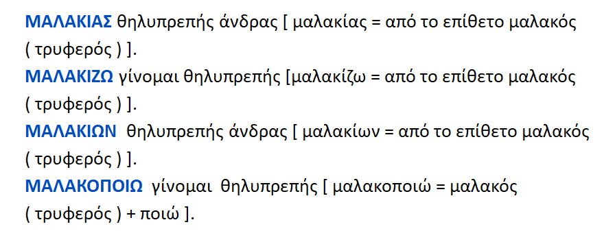 Μαλακίας , μαλακίζω , μαλακίων και μαλακοποιώ.