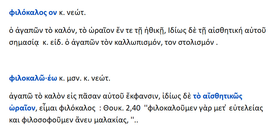 φιλόκαλος ον ,φιλοκαλέω-ώ.