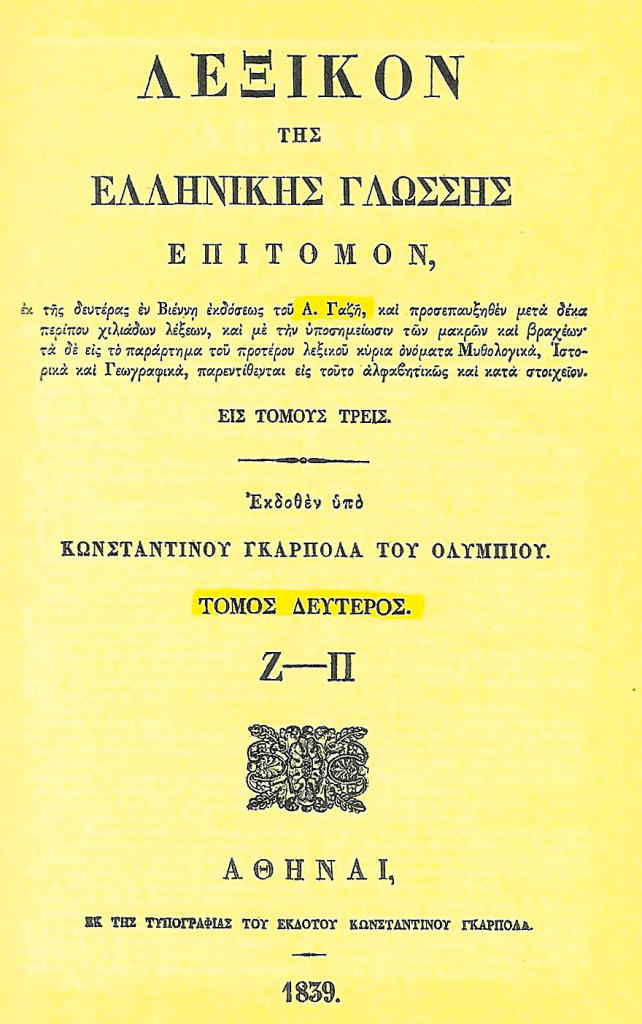 ΑΝΘ.ΓΑΖΗ – » Λεξικόν της Ελληνικής Γλώσσης ».