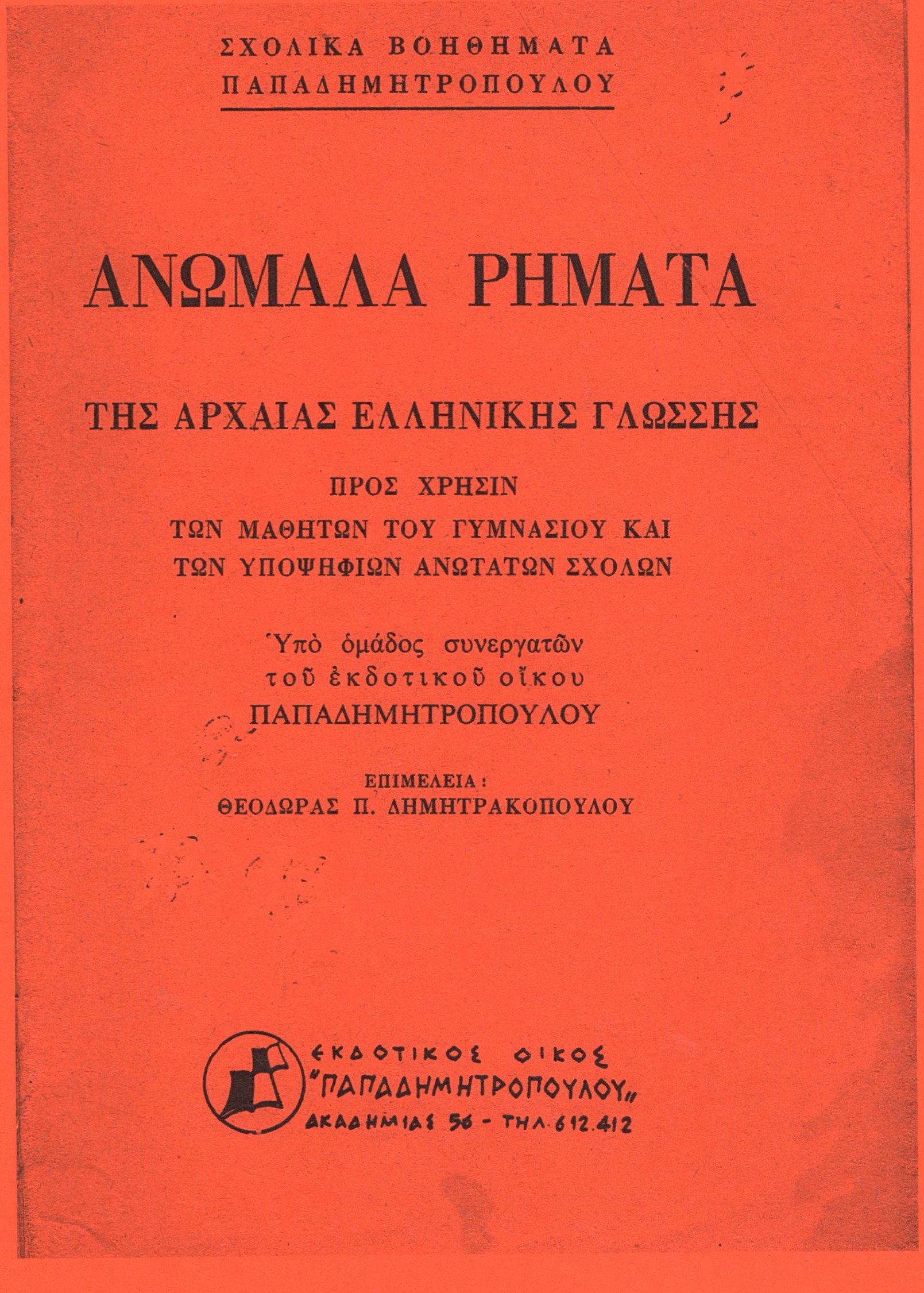 ΠΑΠΑΔΗΜΗΤΡΟΠΟΥΛΟΥ-»ΑΝΩΜΑΛΑ ΡΗΜΑΤΑ της Αρχαίας Ελληνικής γλώσσης ‘.