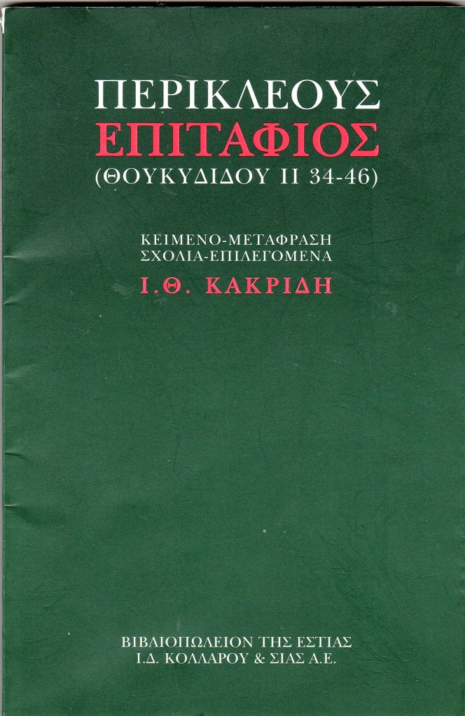 ΘΟΥΚΥΔΙΔΟΥ -» ΕΠΙΤΑΦΙΟΣ ».[απόδ. :I.Θ.Κακριδή ].