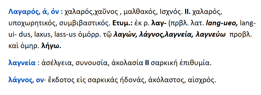 Ας εξετάσουμε την σύνθετη λέξη για να διαπιστώσουμε την ορθότητα της ή το αντίθετο. Η λέξη είναι υγεία + λάγνος .Τι είναι η υγίεια {είναι το σωστό και όχι υγεία };Τι είναι η λαγνεία και ποίος ονομάζεται λάγνος;