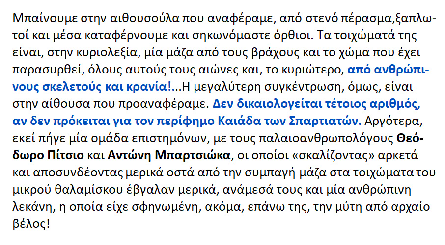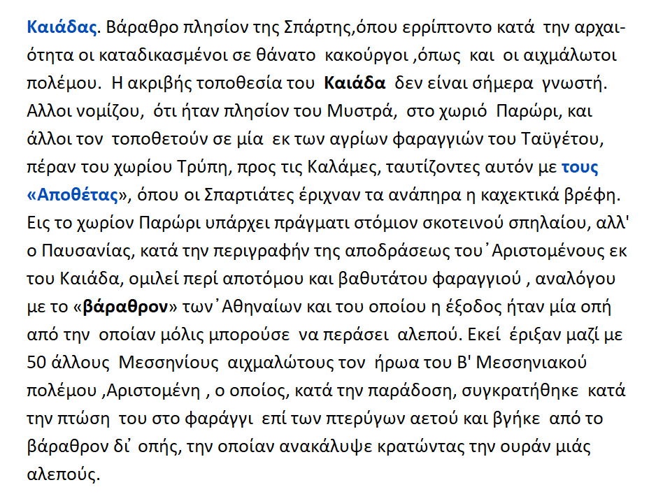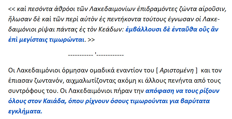 Στο ακόλουθο άρθρο του θα διαπιστώσετε φίλες και φίλοι ανορθογραφίες ,σύγχυση εννοιών { υπηκοότητα-ιθαγένεια} , ανιστόρητα πράγματα για τον Καιάδα και δυσφημιστικά εν τέλει για τους Λακεδαιμονίους .