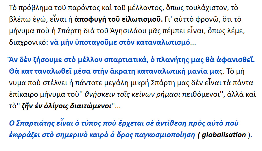 Ο Σπαρτιατικός τρόπος { Λιτότητα } είναι η πρόταση για το μέλλον .