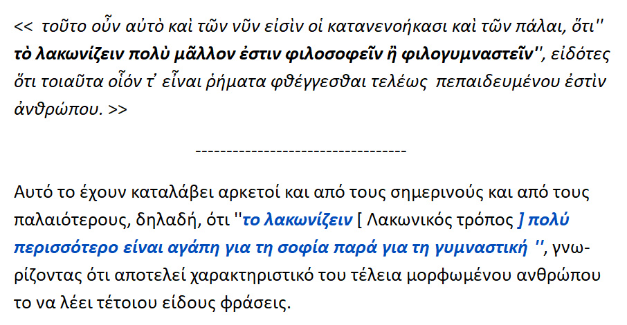 »Tο Λακωνίζειν πολύ μάλλόν εστιν φιλοσοφείν ή φιλογυμναστείν ».