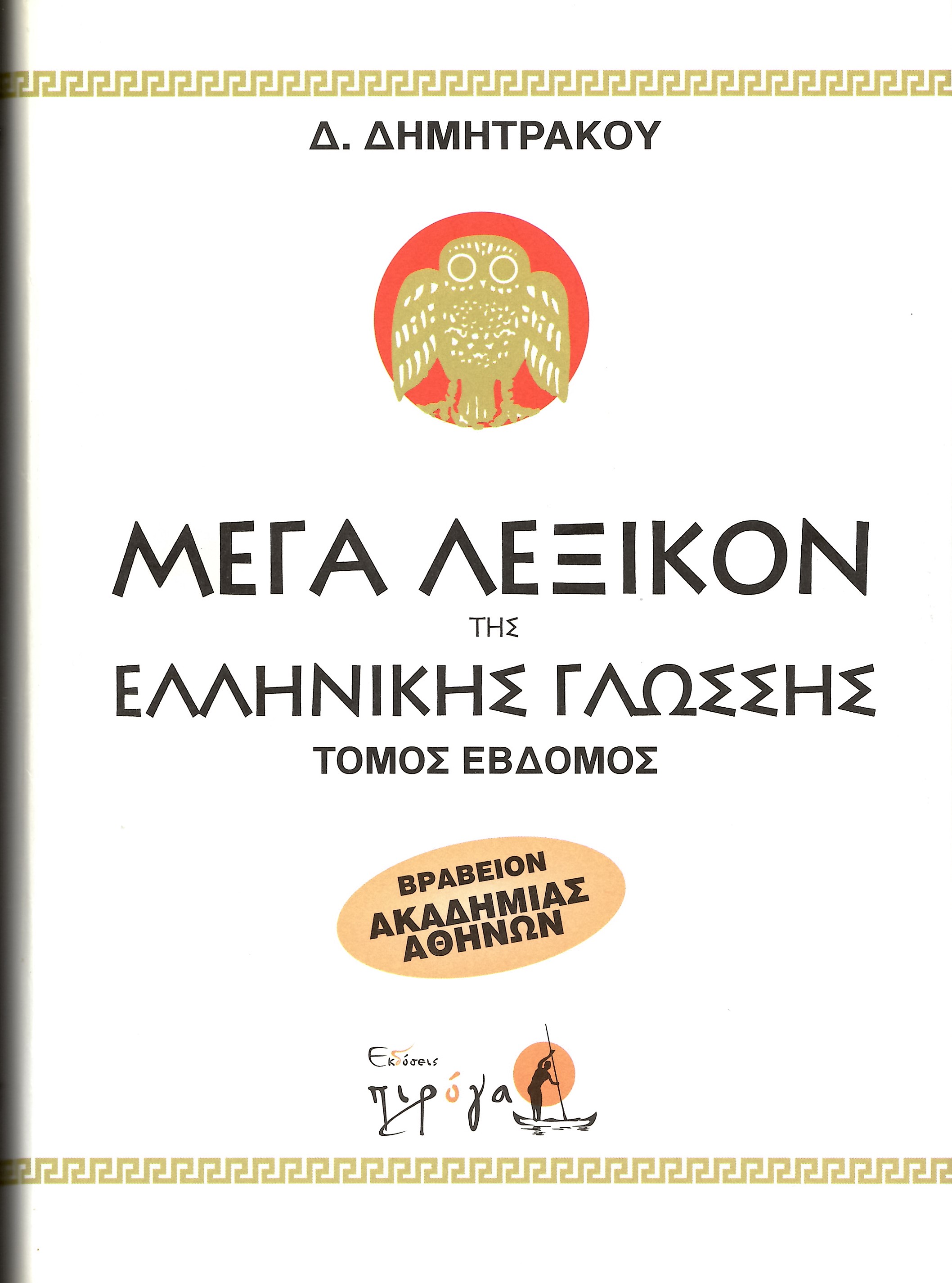 Δ. ΔΗΜΗΤΡΑΚΟΥ – » Μέγα λεξικόν της Ελληνικής γλώσσης».