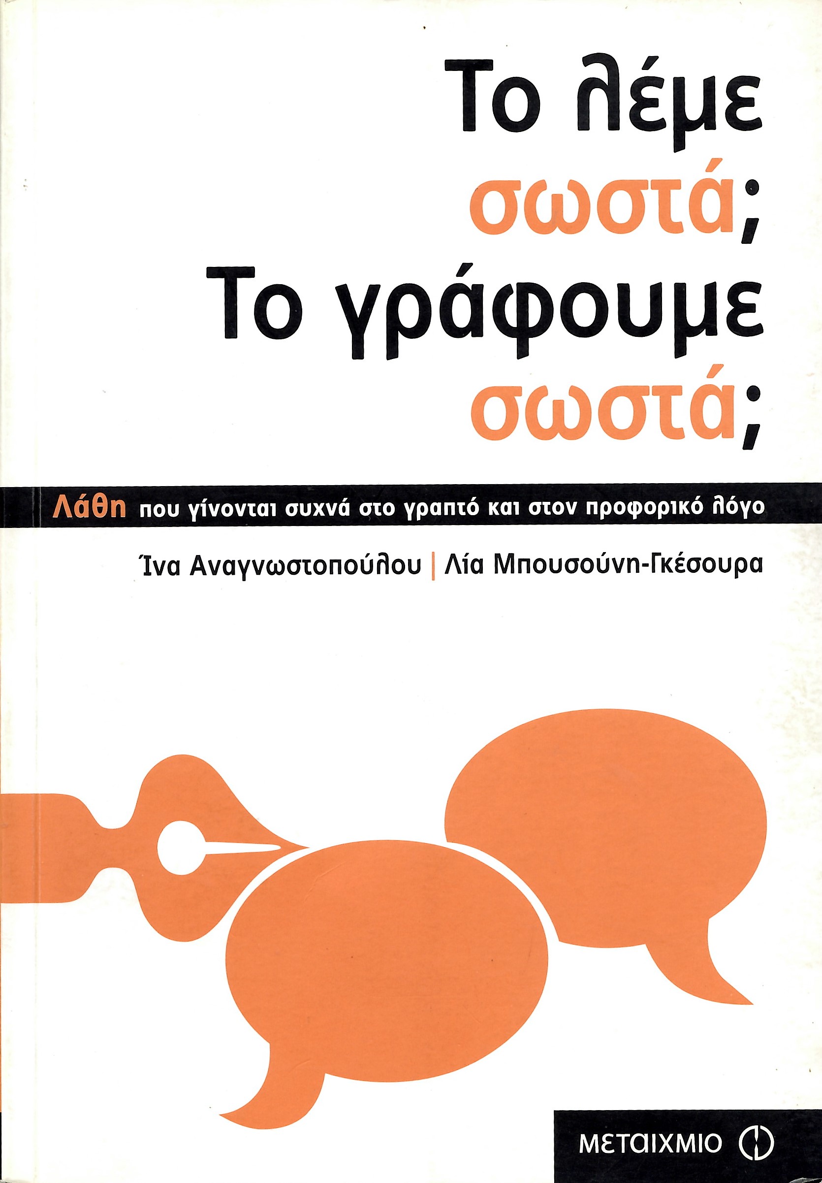 ΙΝΑΣ ΑΝΑΓΝΩΣΤΟΠΟΥΛΟΥ / ΛΙΑΣ ΜΠΟΥΣΟΥΝΗ – ΓΚΕΣΟΥΡΑ-»Το λέμε σωστά ; Το γράφουμε σωστά ; ».