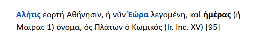 Αλήτις : 1.Εορτή στην Αθήνα ,η οποία τώρα λέγεται εώρα 2. Όνομα ημέρας {ή μαίρας }.