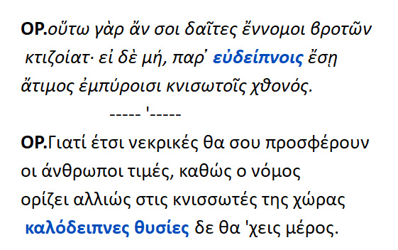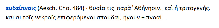 Εύδειπνα { ευ + δείπνον } : Νεκρικές θυσίες μετά δείπνου.