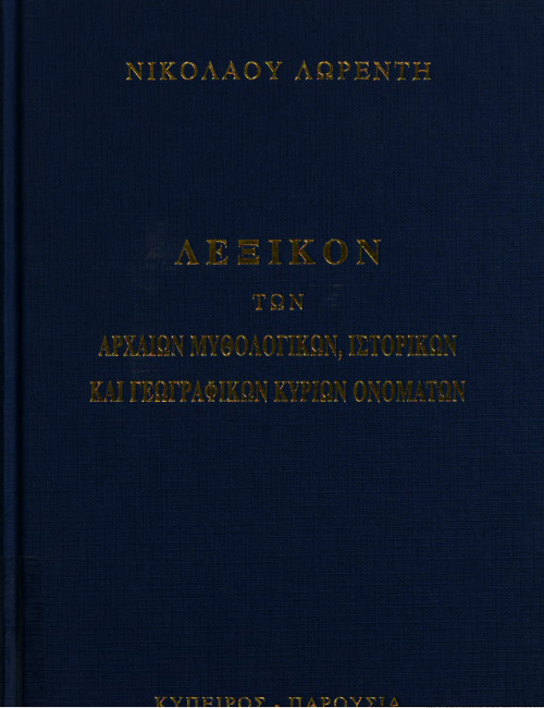 ΝΙΚ.ΛΩΡΕΝΤΗ – » Λεξικόν των Μυθολογικών ,Ιστορικών και Γεωγραφικών κυρίων ονομάτων ».
