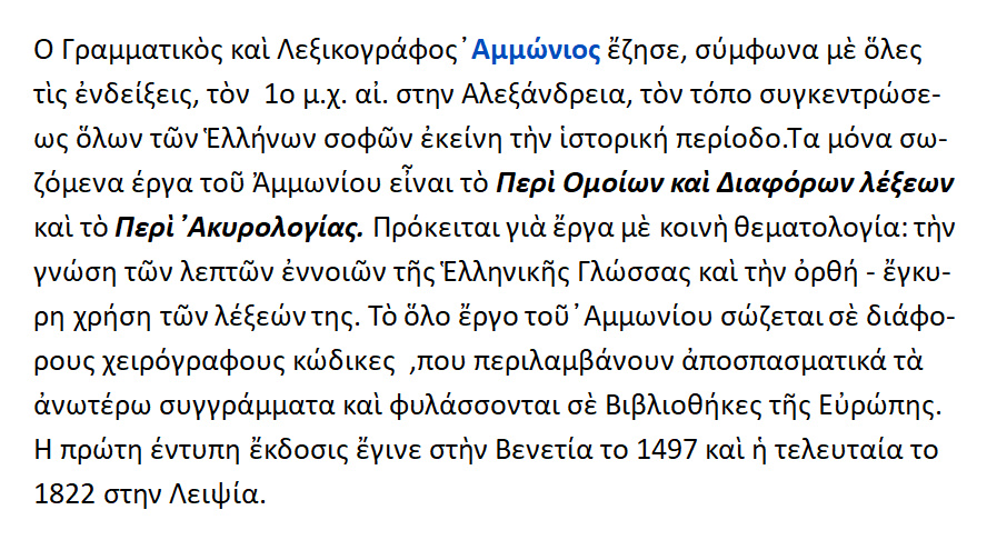 1.ΑΜΜΩΝΙΟΥ –» Λεξικόν ομοίων και διαφόρων λέξεων .
