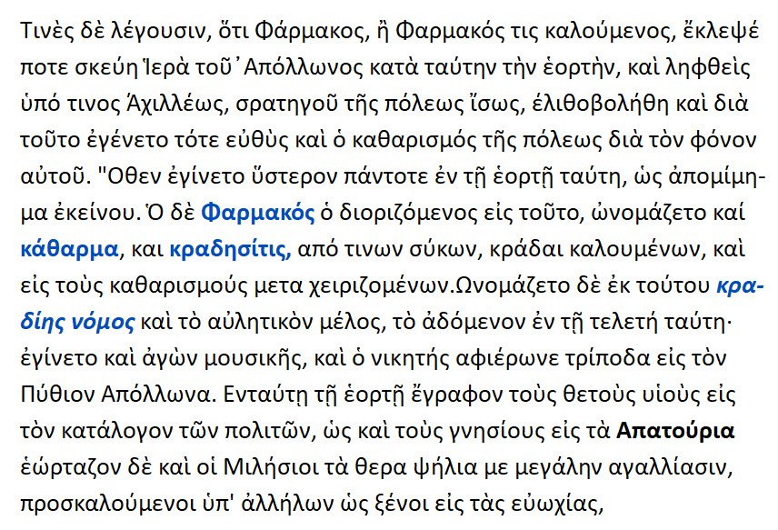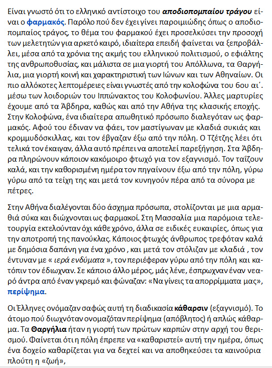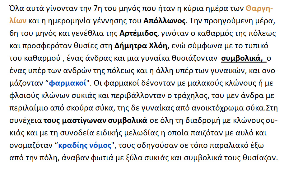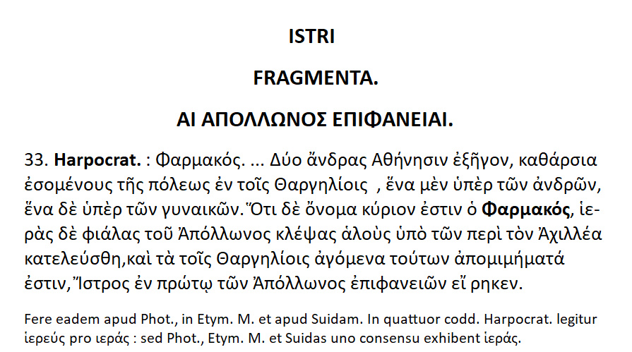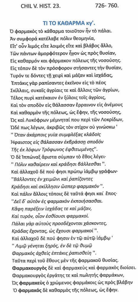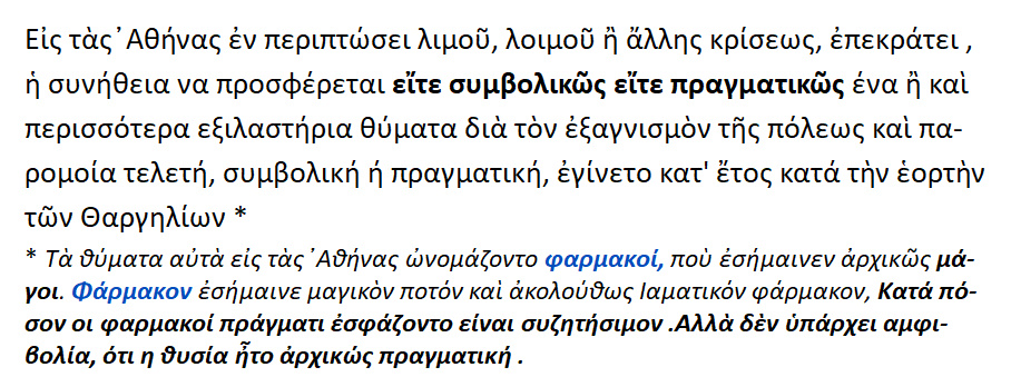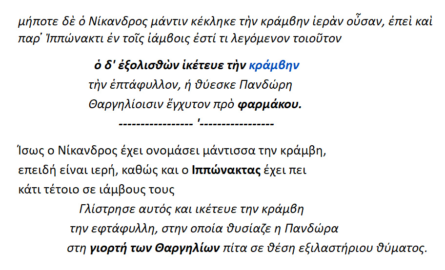 Ηλίου φαεινότερον , ότι ο Αθήναιος ,που γράφει για την κράμβη* και ο Ιππώναξ , που παρωδούσε την επική ποίηση δεν είναι και οι πιο κατάλληλοι να προσφέρουν ισχυρά επιχειρήματα για την θυσία των Φαρμακών . 1.<<Φαρμακού ή φαρμάκου >> ; 2.Ποιά ήταν η Πανδώρα ;