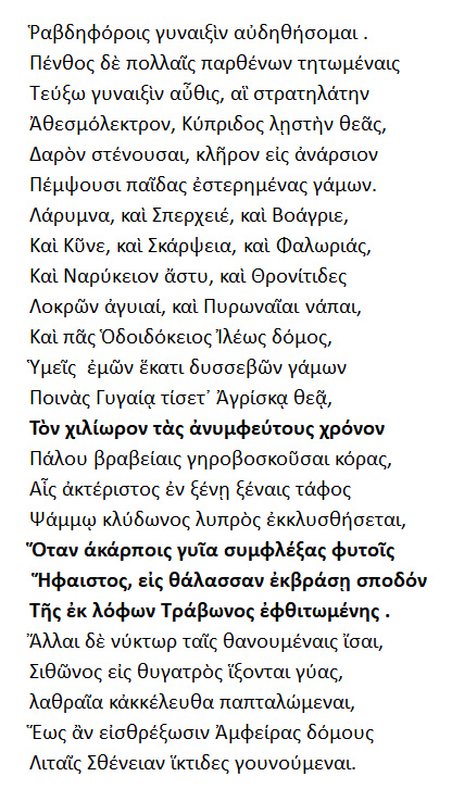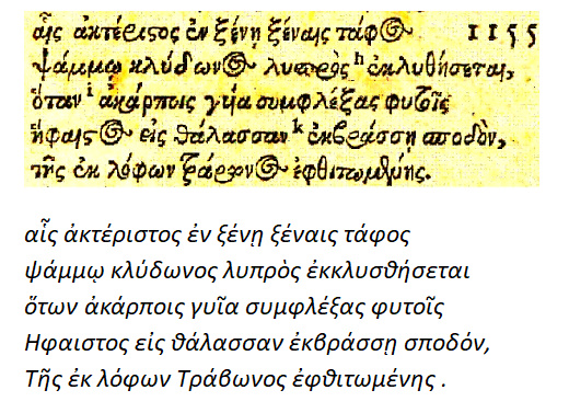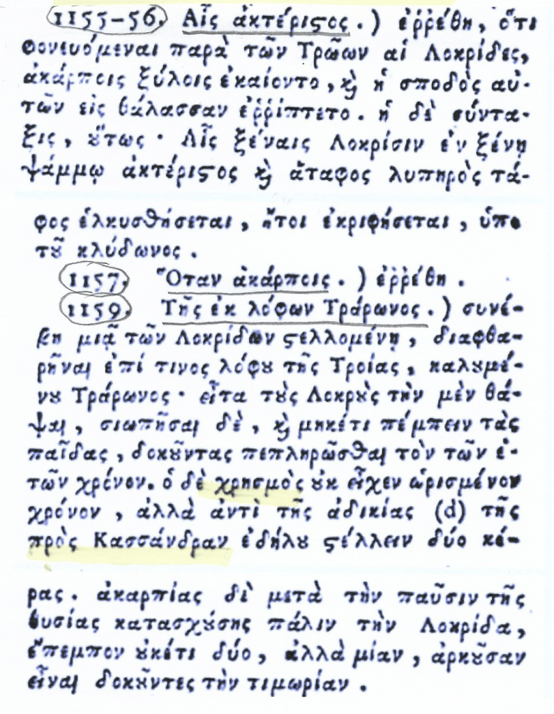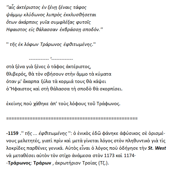ΛΥΚΟΦΡΩΝΟΣ – » Αλεξάνδρα » , { στ. 1157-1158 } , { στ. 1159 ].