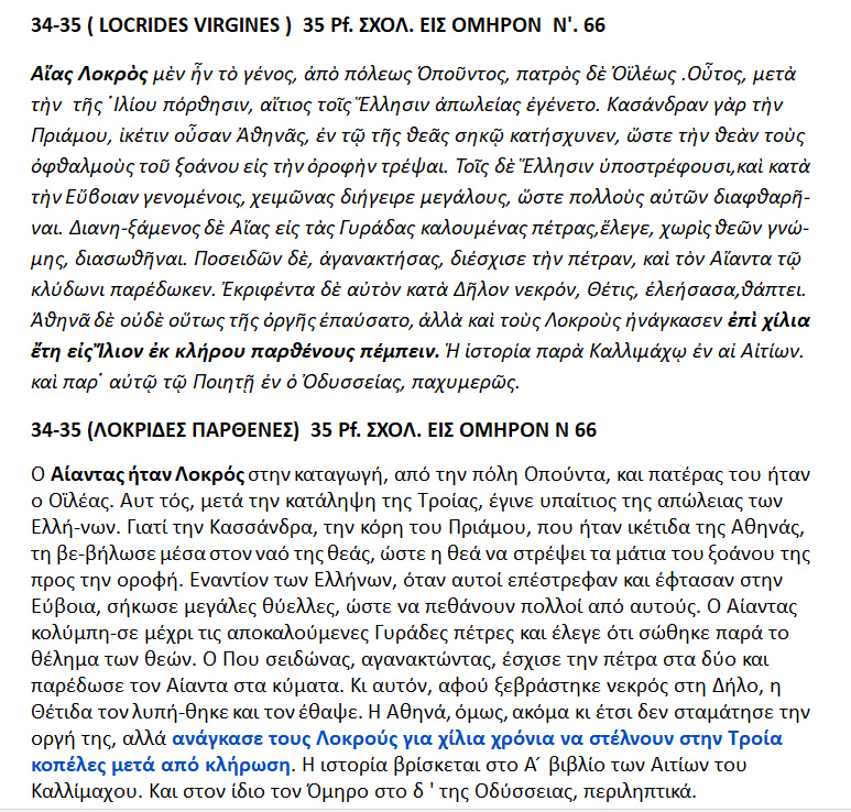 ΚΑΛΛΙΜΑΧΟΥ – » Μαρτυρίαι , Αίτια »,{ 35 ft. } Αίτια : [ Locrides Virgines ].