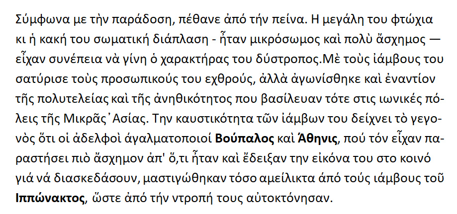 ΑΡΧΑΙΟΙ ΕΛΛΗΝΕΣ ΛΥΡΙΚΟΙ [6] – Ιππώναξ ».