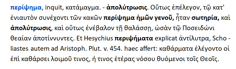 Περίψημα : κάταγμα ή υπό τα ίχνη ή απολλύτρωσις.