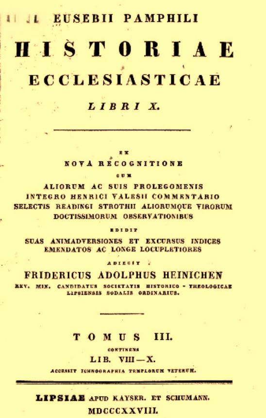 Eusebii Pamphili {Ευσέβιος ο Καισαρείας } -» Historiae ecclesiasticae »,libri X,Τόμος 3. Περίψημα.
