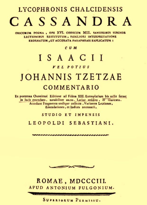 Lycophronis Chalcidensis – » Alexandra ή Cassandra ».