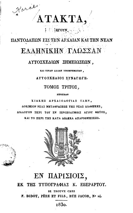 ΑΔ. ΚΟΡΑΗ – » Άτακτα », τομ .3.