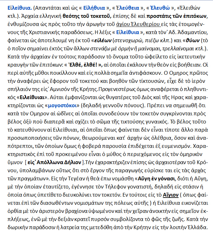 Π. Θέμελη- » Ειλειθυίας Εγκώμιο ». << Ἡ Εἰλείθυ’ι’α ποὺ ἔγινε ἅγιος Ἐλευθέριος.>>