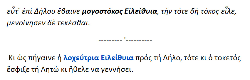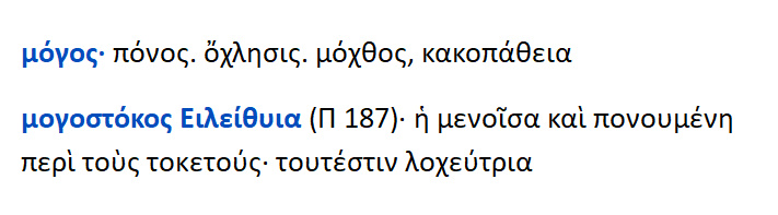 Μογοστόκος Ειλήθυια : η λοχεύτρα .