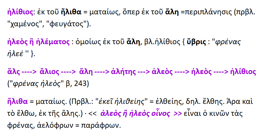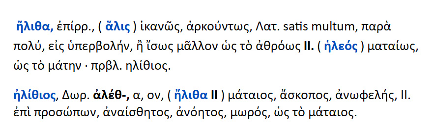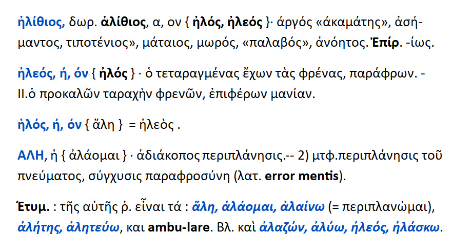 Ηλεός —-> ήλιθα —-> ηλίθιος.