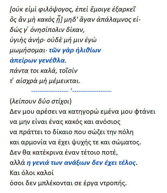 << Των γαρ ηλιθίων απείρων γένεθλα >> .