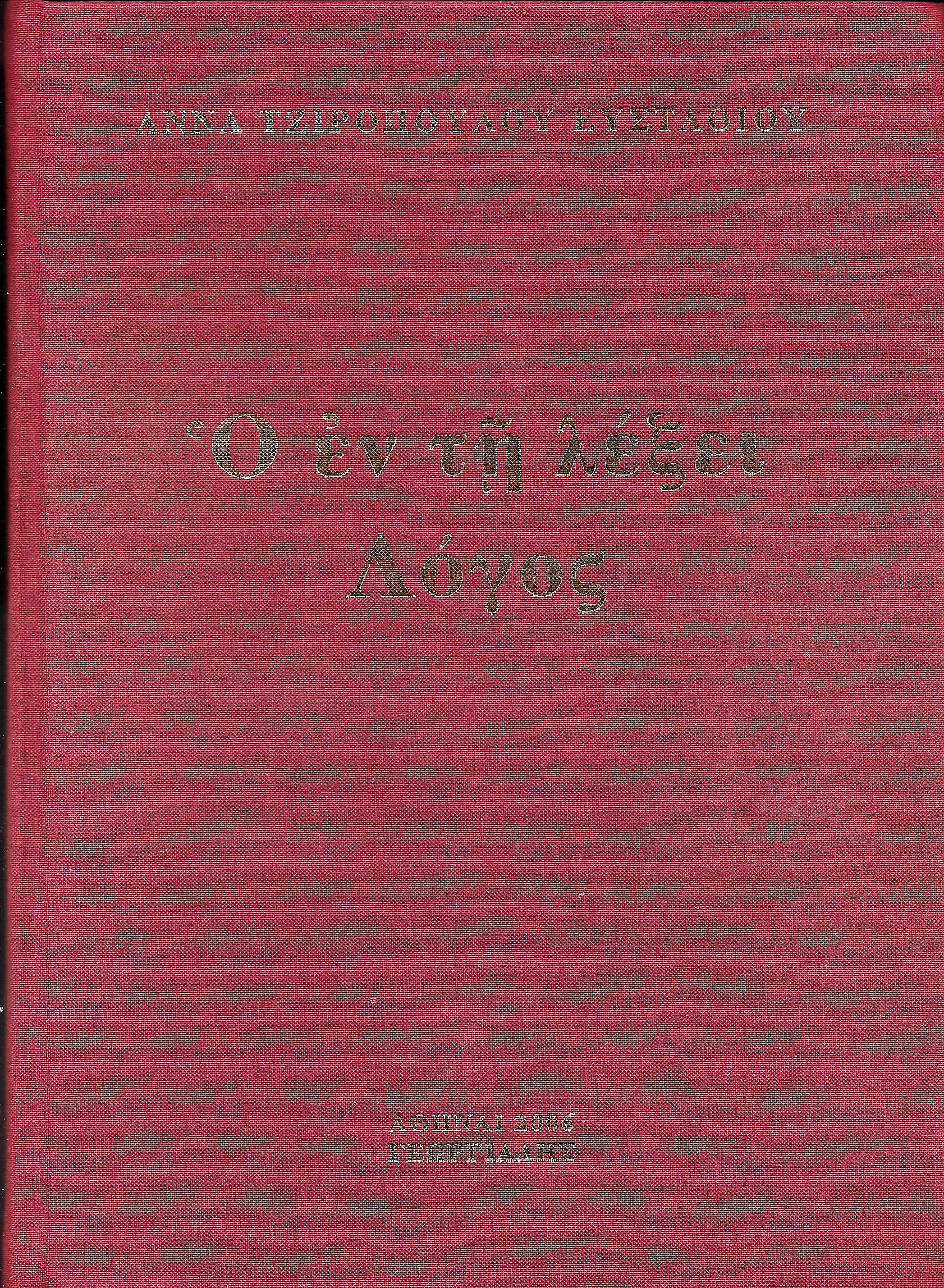 ΑΝ. ΤΖΙΡΟΠΟΥΛΟΥ -ΕΥΣΤΑΘΙΟΥ – »Ο εν τη λέξει Λόγος ».