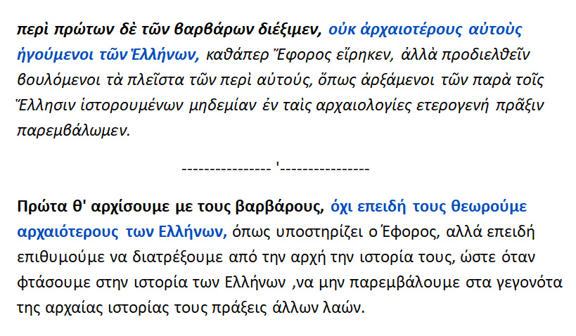 << Πρώτα θ’ αρχίσουμε από με τους βαρβάρους , όχι επειδή τους θεωρούμε αρχαιότερους των Ελλήνων ...>> και ξεκινάει με την ιστορία της Αιγύπτου.!